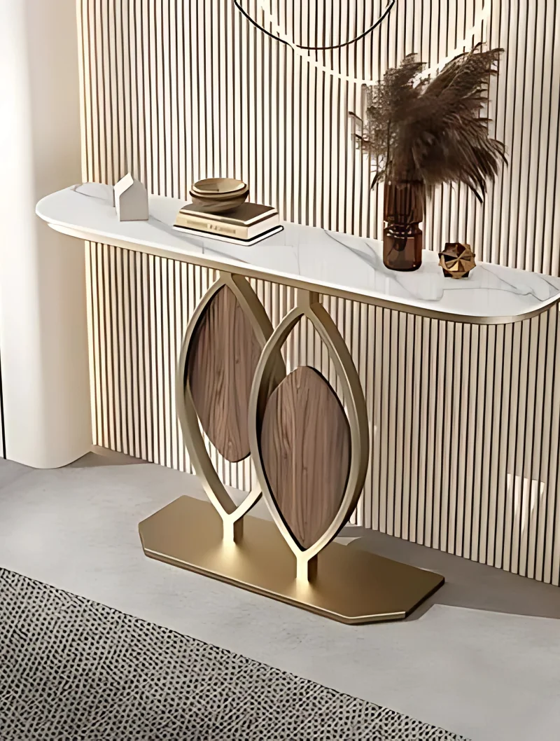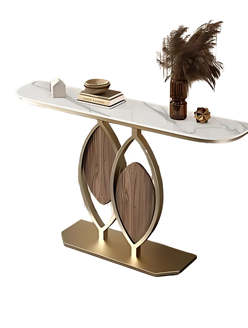 - Marble Top: The surface of the table clearly exhibits the characteristic veining and polished finish of marble.